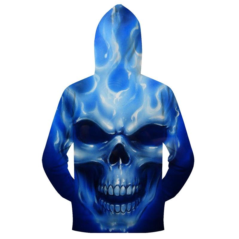 Flaming Blue Skull Zip-up Hoodie